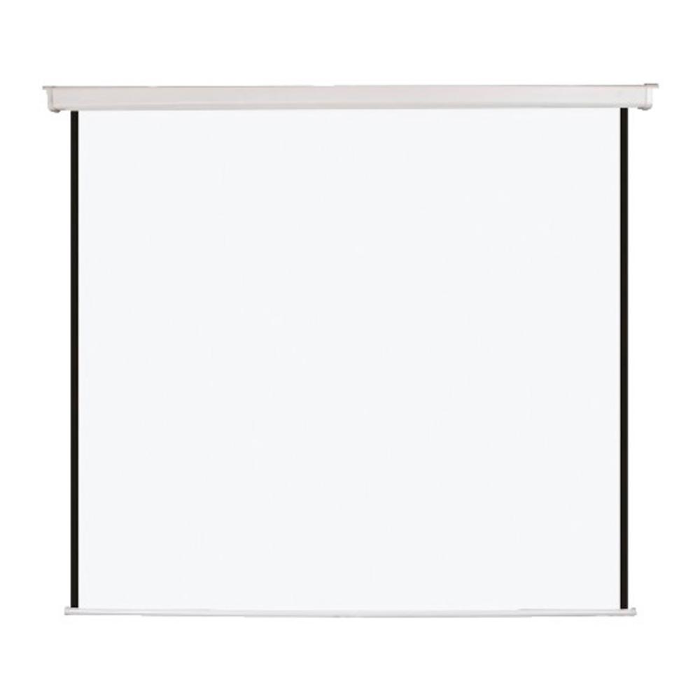 Superficie blanca mate para retroproyección. Formato 4:3. Dorso de la tela de color negro para evitar transparencias. Doble fijación, en pared o techo. Ideal para todas las aplicaciones de proyecciones frontales. Caja de acero blanco. Dimensiones: 180 x 180 cm.