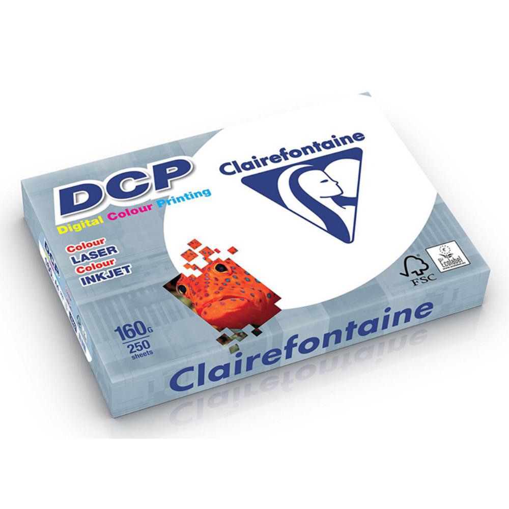 Papel DCP Clairefontaine blanco de alta calidad. Blancura extra y textura uniforme. Impresión de imágenes brillantes y acabados inigualables. Para impresoras inkjet y láser. Precio por paquete.