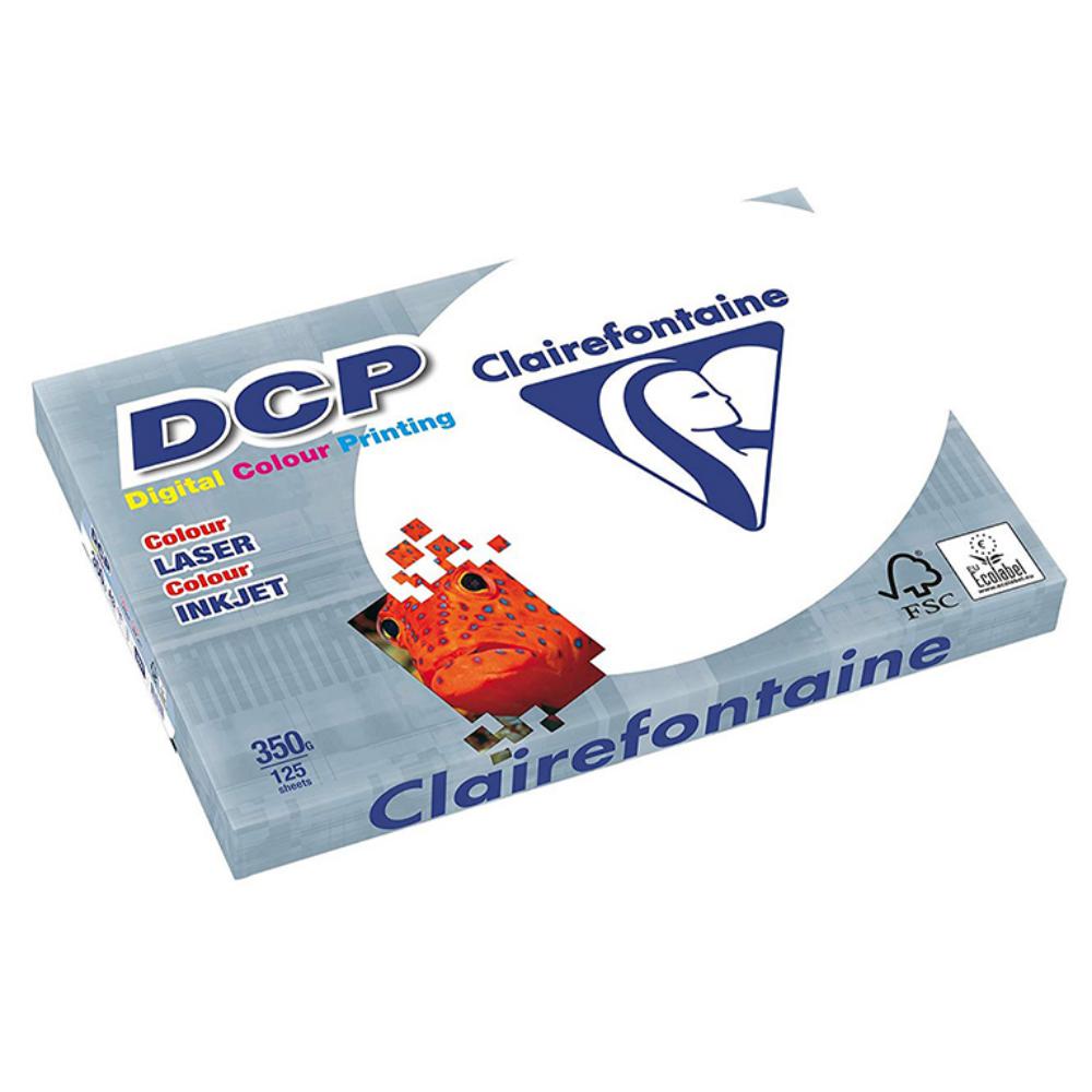 Papel DCP Clairefontaine blanco de alta calidad. Blancura extra y textura uniforme. Impresión de imágenes brillantes y acabados inigualables. Para impresoras inkjet y láser. Precio por paquete.