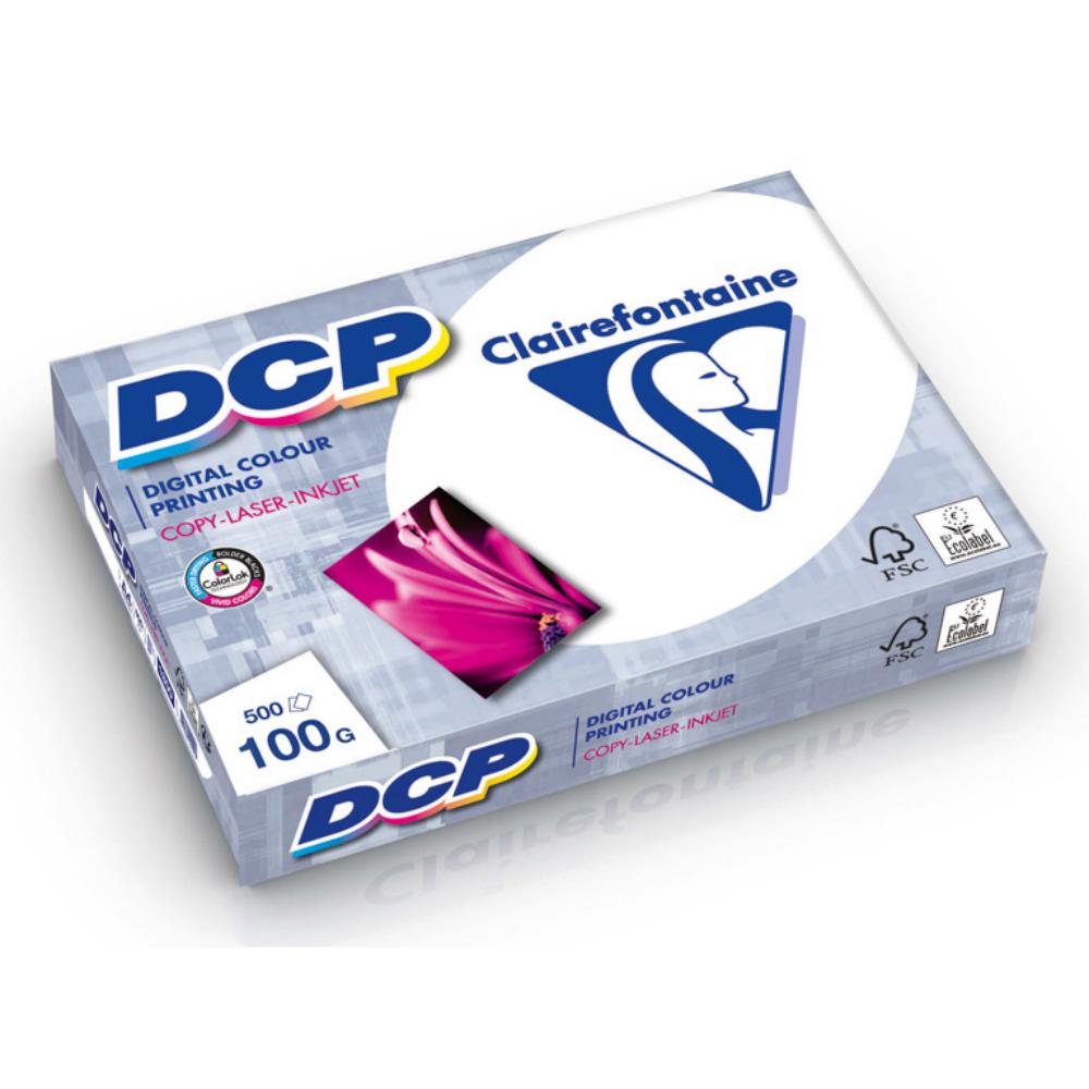 Papel DCP Clairefontaine blanco de alta calidad. Blancura extra y textura uniforme. Impresión de imágenes brillantes y acabados inigualables. Para impresoras inkjet y láser. Precio por paquete.