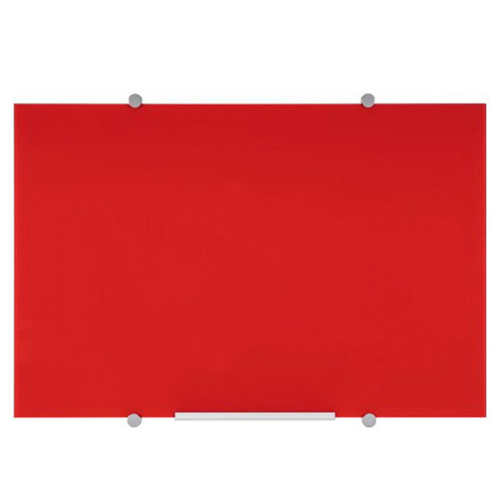 Superficie de cristal templado de seguridad de 4 mm y con gran facilidad de borrado. Uso intensivo. Esquinas cuadradas y abrazadera para una fácil fijación. Incluye: un rotulador, un borrador, bandeja para rotuladores y dos imanes. Color de pizarra: rojo. 45 pulgadas. Medidas: 90 x 60 cm.