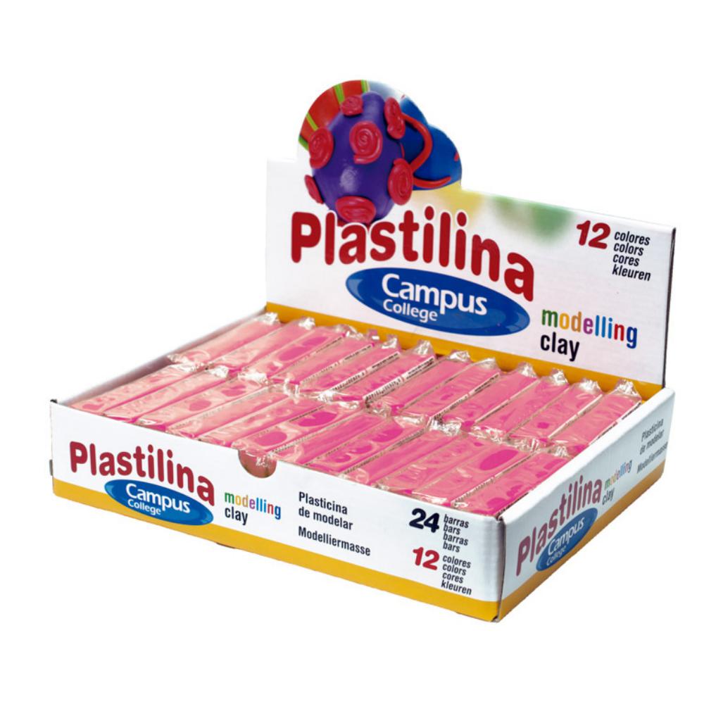 Caja de 24 barras de plastilina para modelar de 60 gramos por unidad. Apta para uso escolar. Muy moldeable, se alisa bien con los dedos. Gran plasticidad y consistencia. No se seca y se puede barnizar. Los colores se pueden mezclar entre sí. Color: rosa.