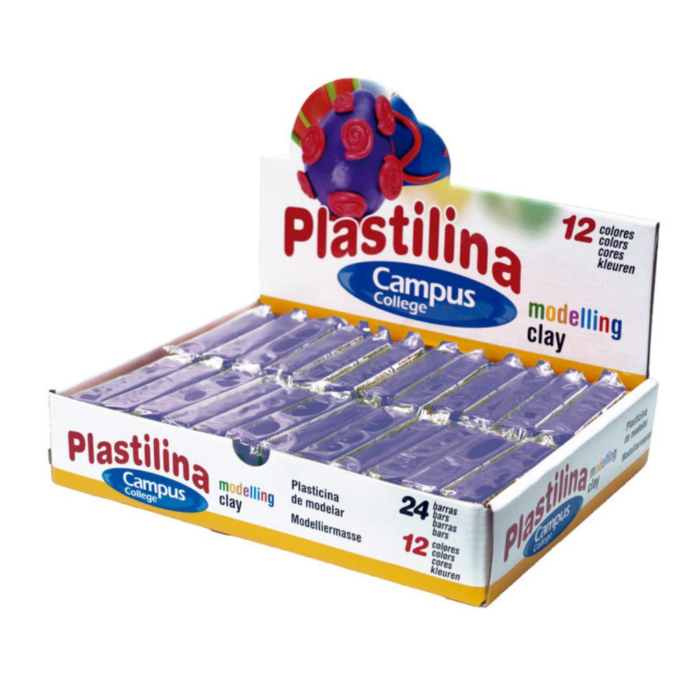 Caja de 24 barras de plastilina para modelar de 60 gramos por unidad. Apta para uso escolar. Muy moldeable, se alisa bien con los dedos. Gran plasticidad y consistencia. No se seca y se puede barnizar. Los colores se pueden mezclar entre sí. Color: violeta.