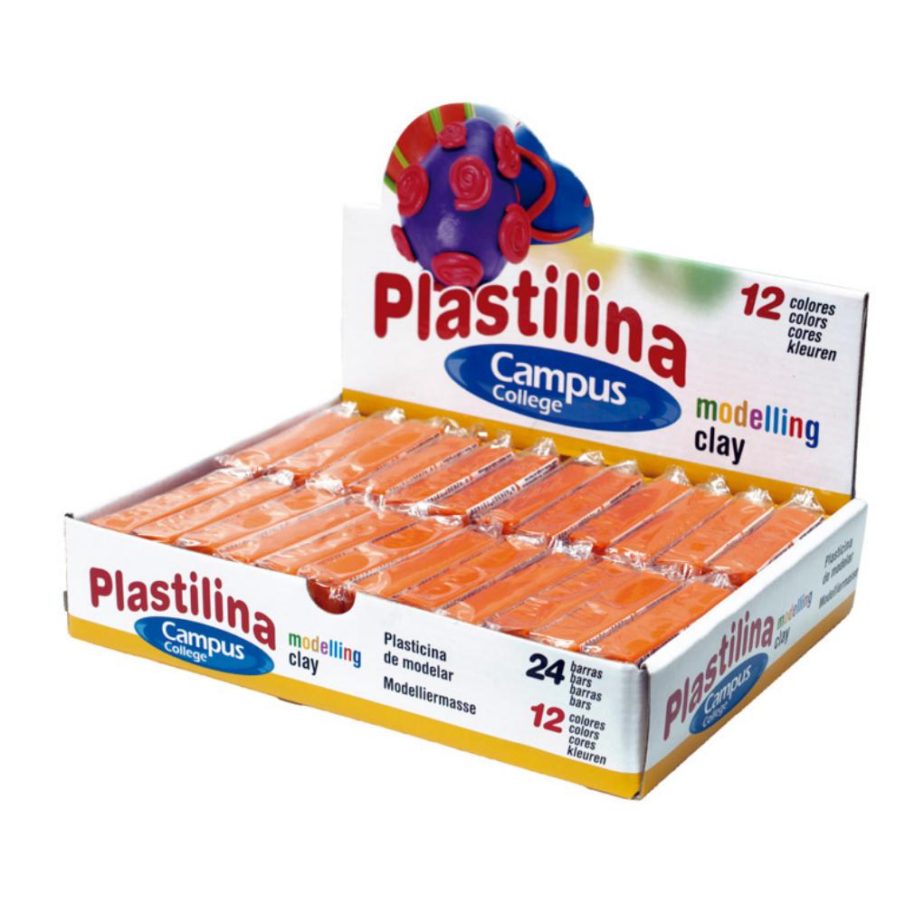 Caja de 24 barras de plastilina para modelar de 60 gramos por unidad. Apta para uso escolar. Muy moldeable, se alisa bien con los dedos. Gran plasticidad y consistencia. No se seca y se puede barnizar. Los colores se pueden mezclar entre sí. Color: naranja.