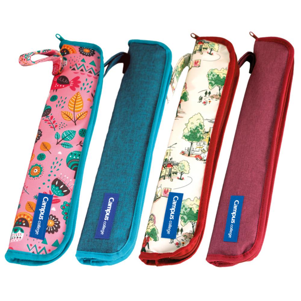 Estuche portaflautas fabricado en poliéster. Con cierre de cremallera. 4 diseños surtidos. Medidas: 370 x 85 x 15 mm.