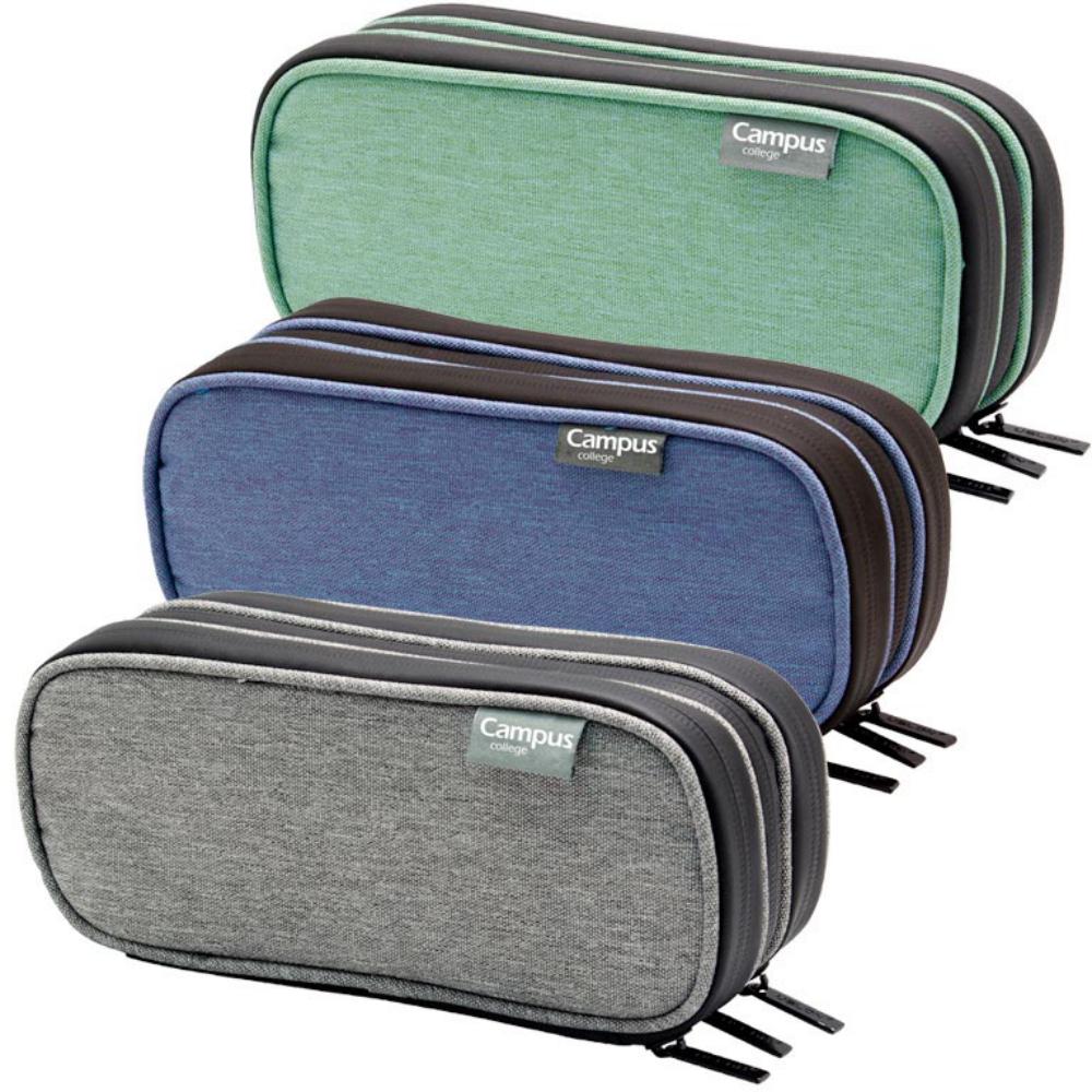 Portatodo triple con 3 cremalleras. Colores: gris, verde y azul. Medidas: 213 x 70 x 93 mm. Envase: 3 unid surtidas.
