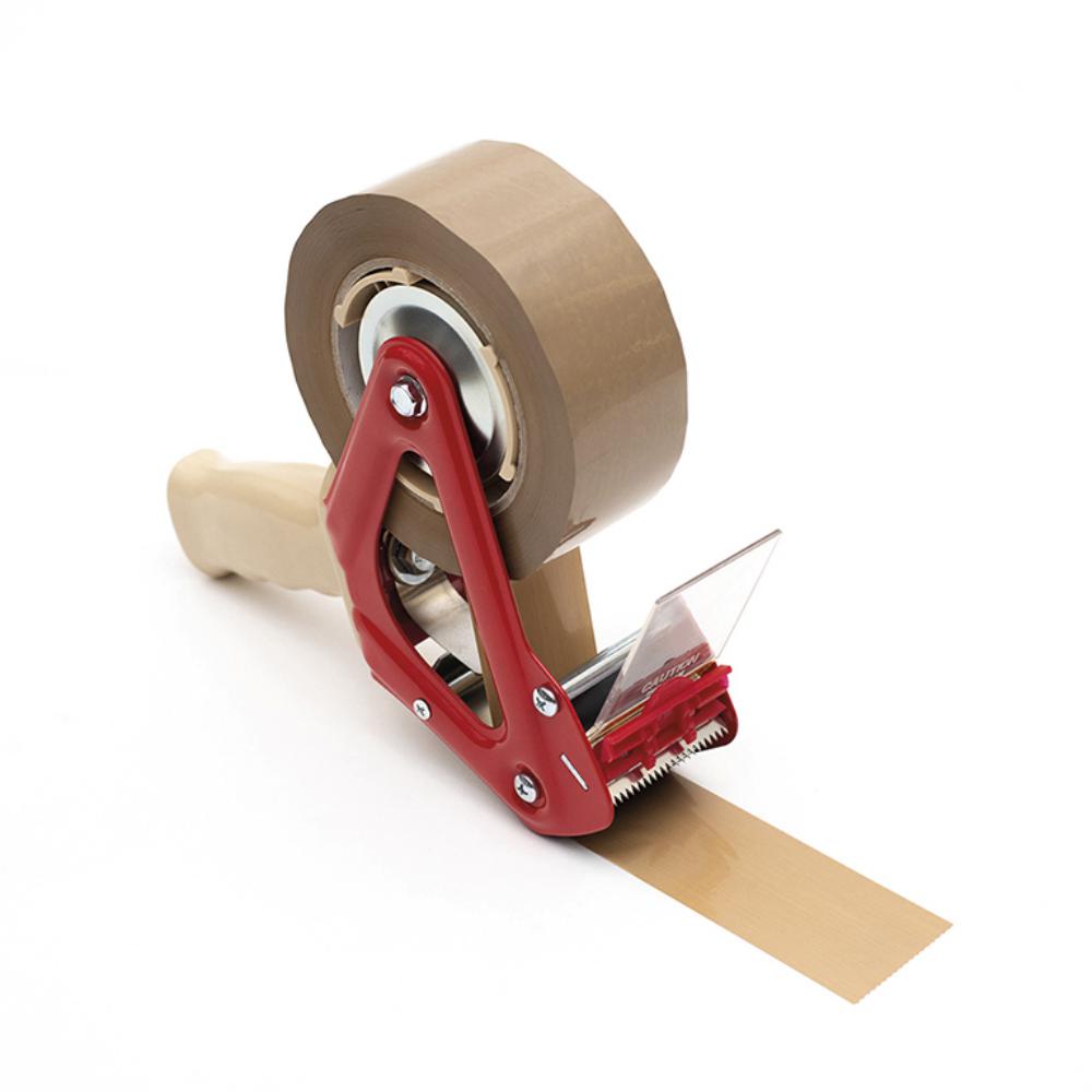 Dispensador metálico para cinta de embalaje de hasta 75 mm de ancho, con mango rígido ideal para uso continuado, muy restistente.