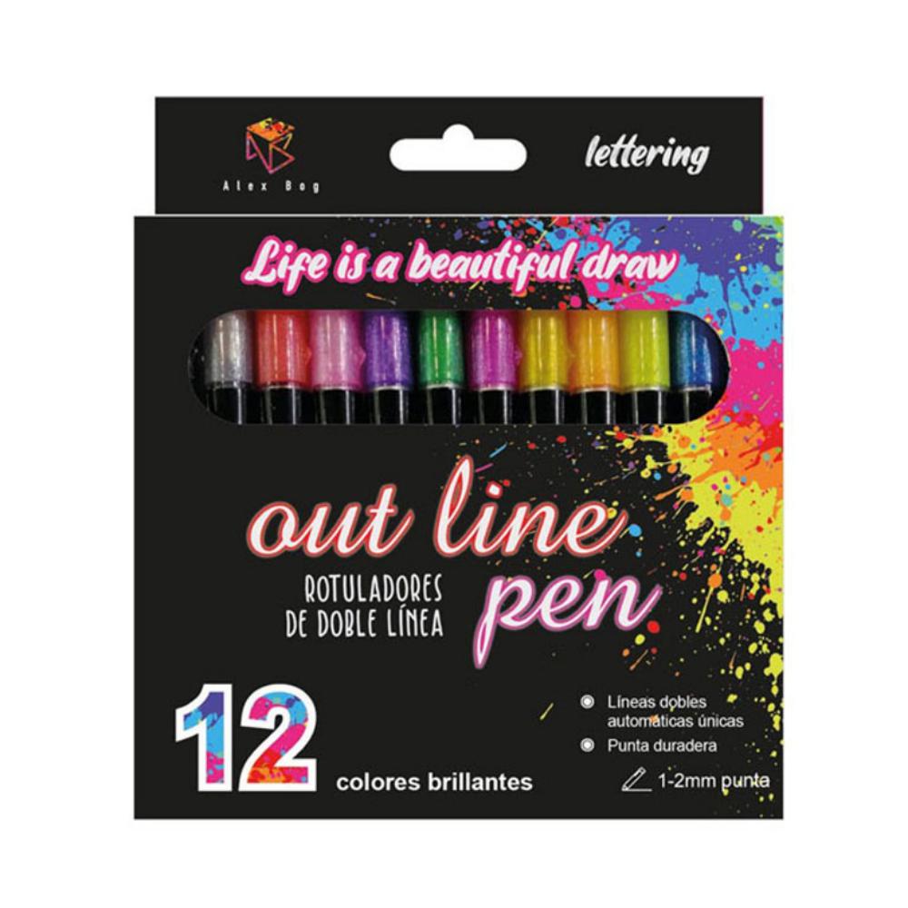 Los rotuladores Outline Marker son rotuladores con borde de color pastel y relleno metálico. Líneas dobles automáticas y únicas. De grosor 1 – 2mm. Prácticos, divertidos y originales, son perfectos para decorar cartas de felicitación, personalizar tu diario o añadir un toque original a tu día a día. La tinta especial glitter en 8 colores diferentes está pensada para talentos creativos que quieren dar a sus obras un toque chispeante. Tienen un capuchón especial anti-ahogo y punta de fibra bloqueada que no se hunde, así puedes dar rienda suelta a tu imaginación de la forma más segura. Contenido: 12 colores diferentes.