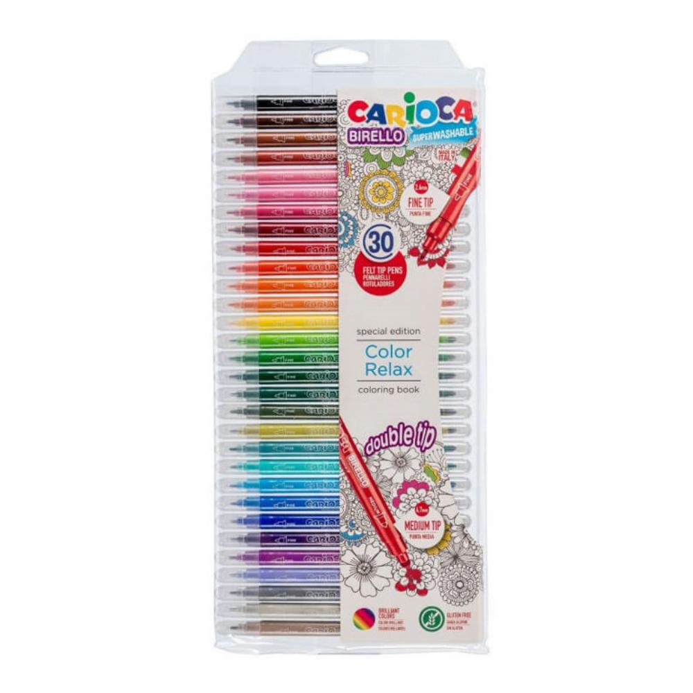 Este set contiene 30 rotulares de Birello, edición especial para colorear. Es un rotulador de doble punta, fina/media. Tinta lavable, fácil de limpiar tanto en la piel como en la mayoría de las telas, con agua y sin jabón. No tóxica. Punta redonda, 2.6 mm, 4.7 mm.