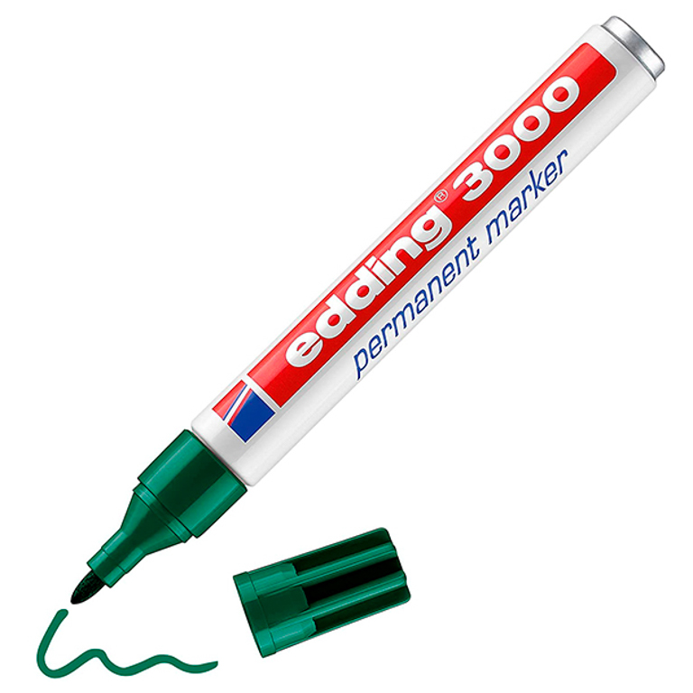 Marcador punta cónica de secado rápido, apto para rotular, marcar y dibujar sobre casi todo tipo de materiales, incluidas superficies metálicas, vidrio y plástico. Tinta permanente casi sin olor. Cuerpo de aluminio. Recargable. Trazo: 1,5 – 3 mm. Color verde. Envase de 10 unidades.