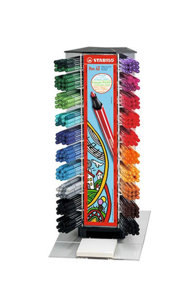 Punta de fibra de 1.0 mm. Rotulador de alta calidad con punta de fibra e intensos colores para trazos fuertes y amplias zonas a colorear. Acuarelable. Inodoro, con tinta al agua. Tapón ventilado. Colores surtidos. Expositor de 240 unidades.