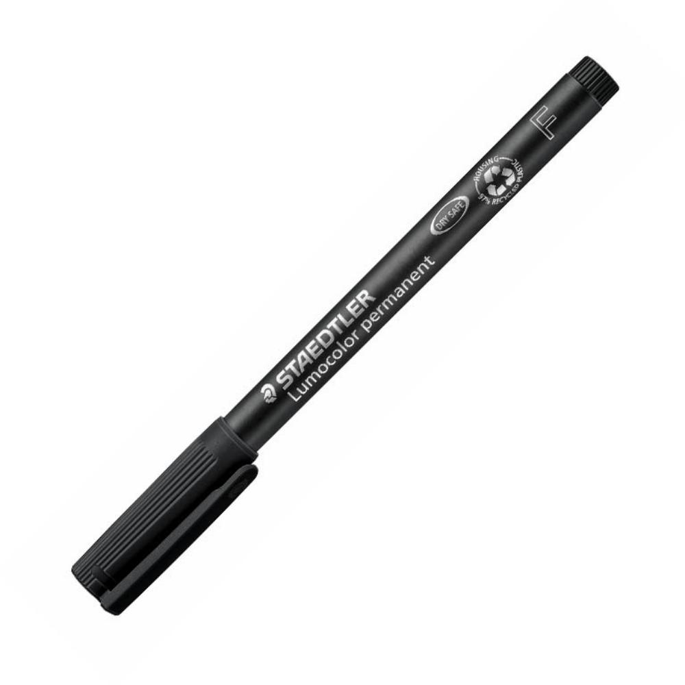 Rotuladores especiales para retroproyección. Tinta permanente. Punta fina de 0,6 mm. Color: negro. Envase de 10 unidades. Carcasa fabricada con un 97% de plástico reciclado según ISO 14201 (cuerpo, capuchón y embellecedor)