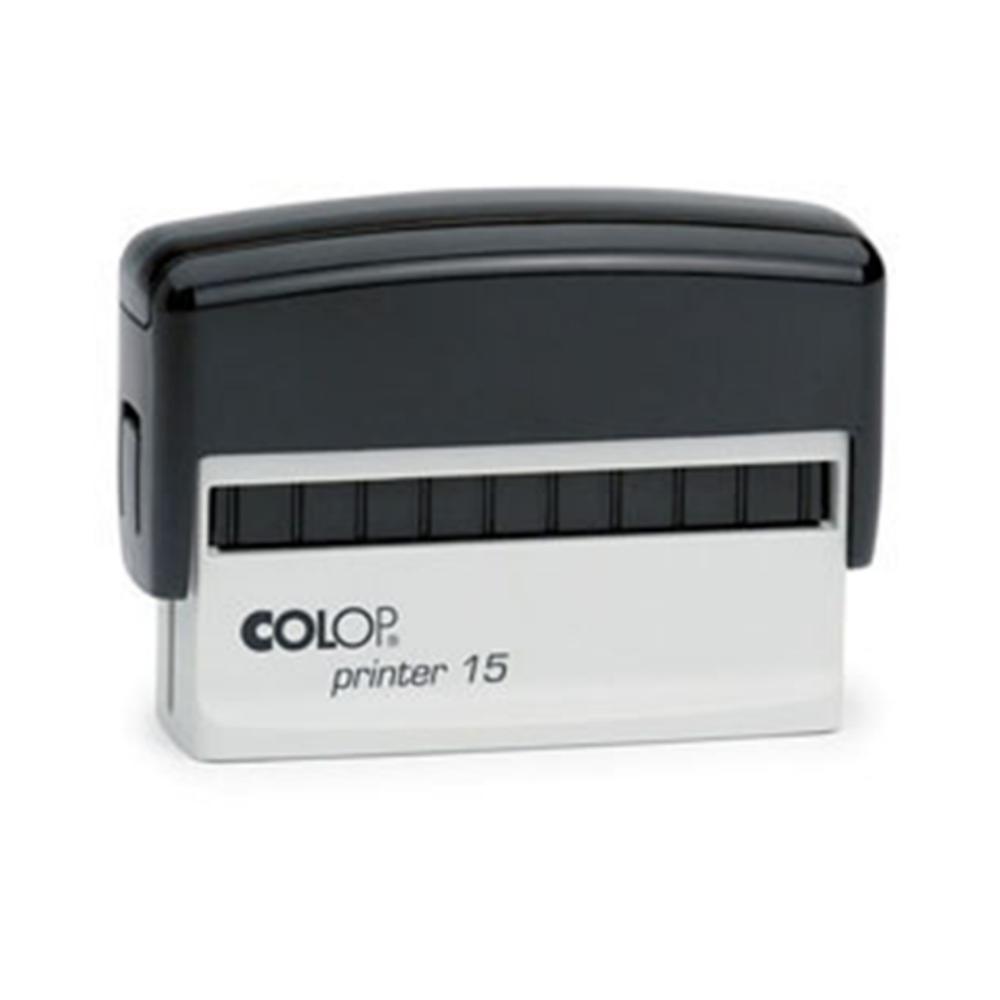 Sello personalizado de entintaje automático, fabricado en ABS. Modelo: printer 15. Nº de líneas: 3. Almohadilla: E/15. Medidas print: 10 x 60 mm.