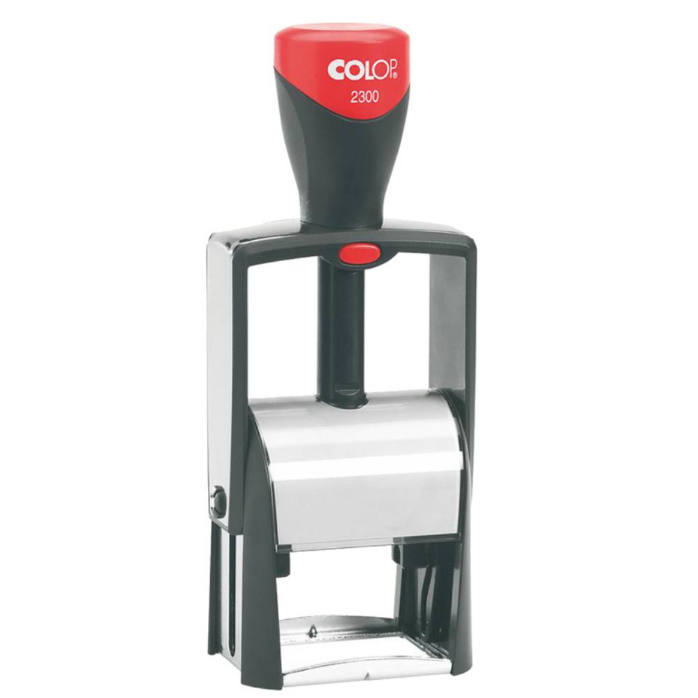 Sellos de entintaje automático metálicos. La serie más resistente. Preparada para un uso continuado. Modelo: Classic S-2300. Nº de líneas: 7. Formato: sin fecha. Color: negro.