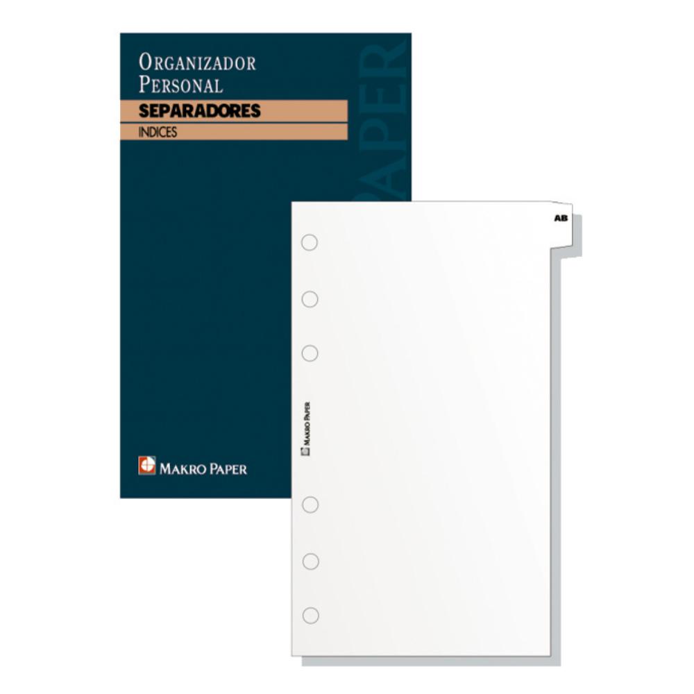 Separadores y Direcciones para agendas de anillas. Con 6 taladros. Medidas: 146 x 210 mm. 20 hojas.