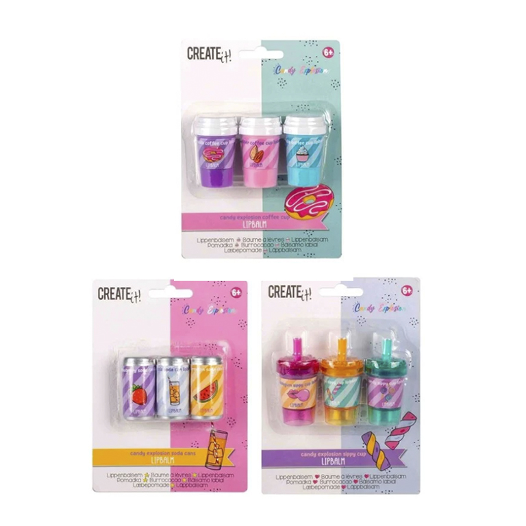 Brillo labial mantendrá tus labios suaves sin pegajosidad. Disponible en tres sabores: rosa (caramelo), azul (coco) y morado (chicle). ¡Colecciónalos todos para una dulce variedad!
