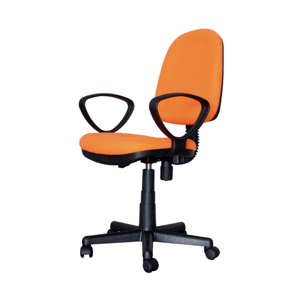 Silla de oficina giratoria de gran resistencia y durabilidad. Asiento ajustable en altura. Regulación del respaldo en vertical y en inclinación. Asiento y respaldo acolchados. Brazos en pvc de alta resistencia. Base con ruedas de 5 radios. Altura regulable entre 95 y 107 cm. Color: naranja. Medidas (anchura x altura x profundidad): 56 x 95-107 x 47 cm.