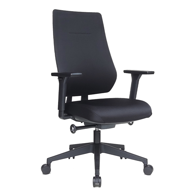 Silla de oficina operativa profesional con el asiento tapizado en tela ignífuga sobre interior de espuma inyectada y el respaldo tapizado con tela ignífuga sobre estructura inyectada en polímero técnico que incorpora sistema adaptativo de movimiento, base de polímero inyectado y robusto con mecanismo sincro con sistema de ajuste de peso automático. Regulación lumbar y asiento con regulación de profundidad. Brazos regulables 3D. Dimensiones: 49 x 110-119 x 44 cm. Color: negro.