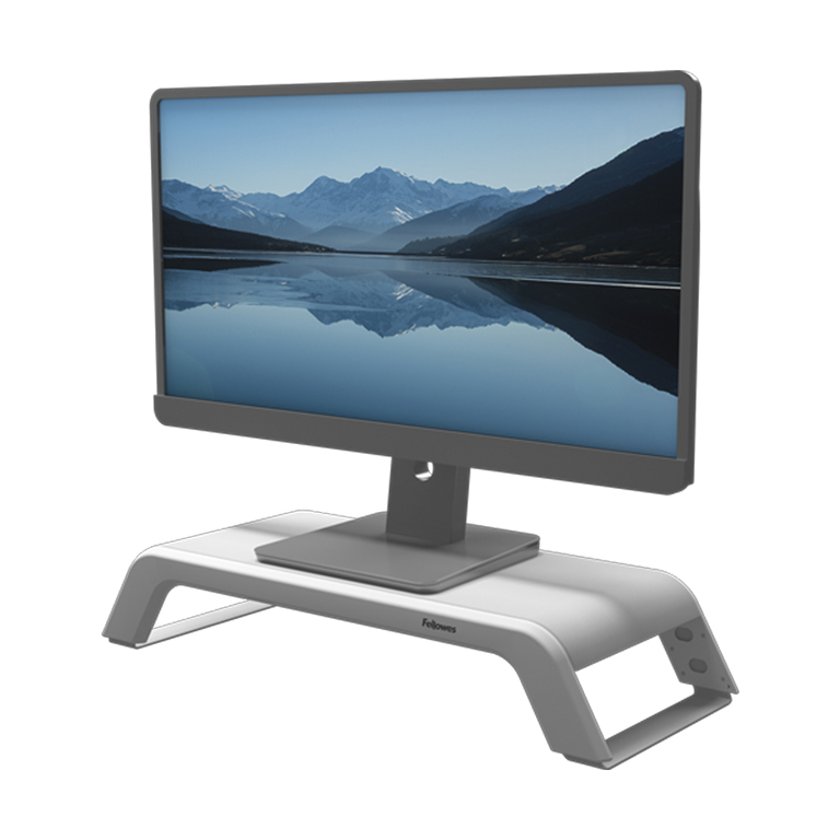Elevador para monitor con 3 ajustes diferentes para conseguir la altura perfecta, maximizando el espacio en el escritorio y eleva el monitor a una altura de visualización cómoda para reducir la tensión en los ojos, el cuello y los hombros. Su diseño moderno y su tamaño permiten colocar una pantalla de hasta 22.6kg de peso, y su embalaje es 100% reciclable. Dimensiones (An x Alt x Pro): 560 x 102 x 222 mm. Soporta hasta22,6 kg de peso. Para monitores de hasta 32″”. Color: blanco.
