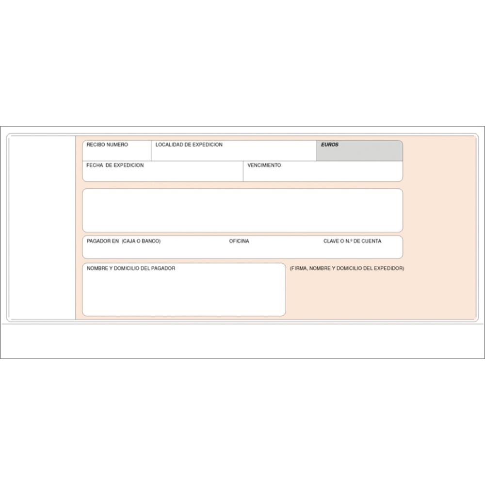 Blocs encolados de recibos impresos en 2 colores. 100 hojas, formato apaisado. Medidas: 215 x 100 mm. Envase de 5 unidades.