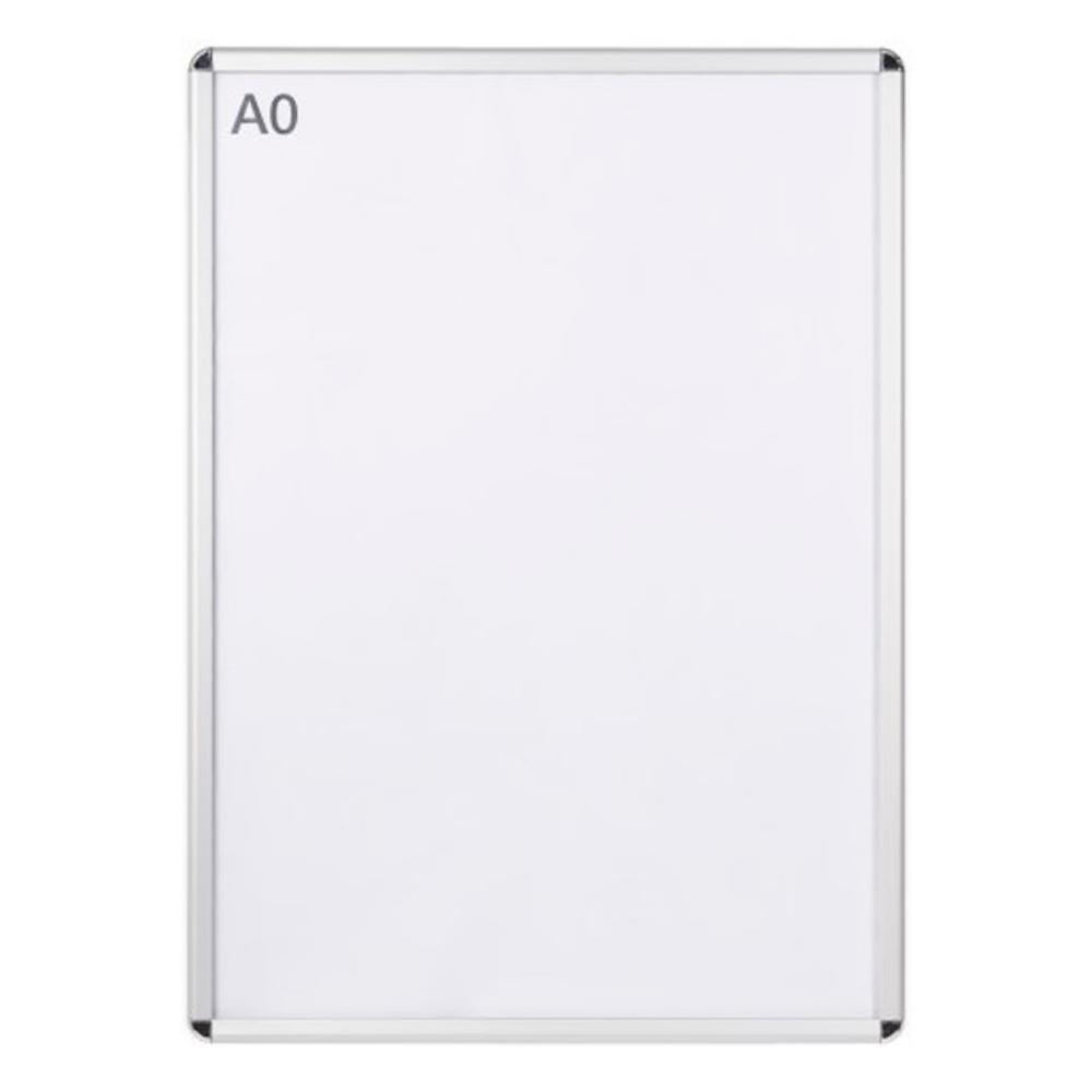 Vitrina portapóster con marco de clip que se abre frontalmente para cambiar los documentos de manera sencilla. Dispone de una lámina de PVC antideslumbrante que protege el documento. Impermeable para usar en exteriores. Elementos de fijación incluidos. Formato A0. Capacidad para 8 hojas A4.