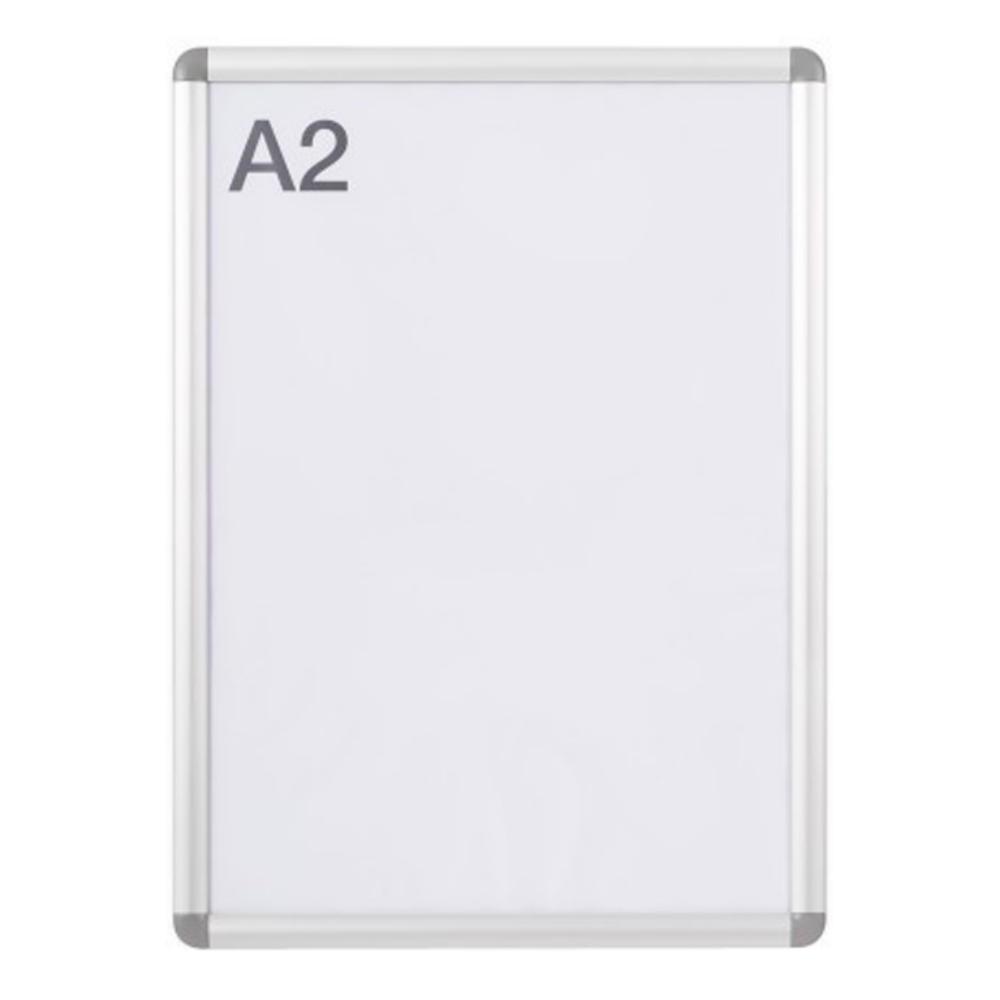 Vitrina portapóster con marco de clip que se abre frontalmente para cambiar los documentos de manera sencilla. Dispone de una lámina de PVC antideslumbrante que protege el documento. Impermeable para usar en exteriores. Elementos de fijación incluidos. Formato A2. Capacidad para 4 hojas A4.